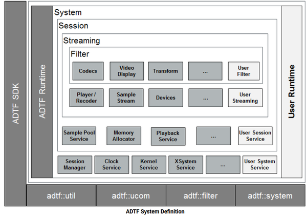 ADTF 作为一款专业的汽车数据与时间触发框架软件,是一个基于层级和面向服务的系统架构。