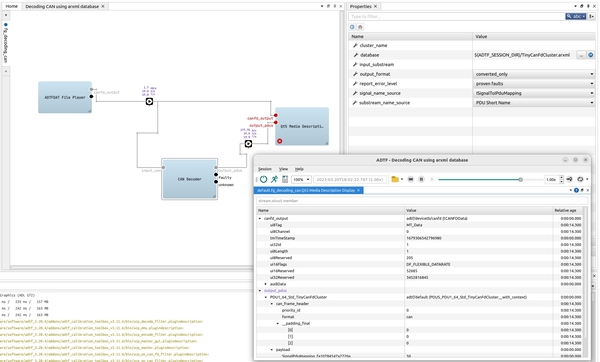 在ADTF Car Communication Toolbox中,基于 “AUTOSAR ARXML 文件对汽车总线通信数据进行解码,实现了 CAN、FlexRay 和 SOME/IP 等总线协议的解析。