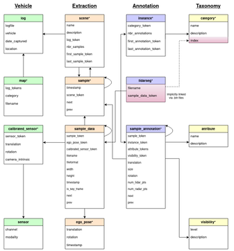 各个json标注文件的关系网络也与nuScenes数据集保持一致,这里以nuScenes官方文件结构图进行说明。