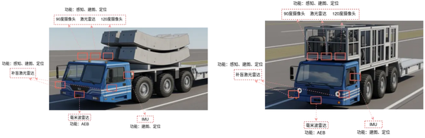 本次搭载对象为MSV胶轮车(用于TBM隧道施工物料运输)。车辆长期运行于狭长、封闭的隧道内部,且需要分别在车辆的“前端”和“后端”搭载两套独立的感知系统,以满足双向行驶的作业需求。