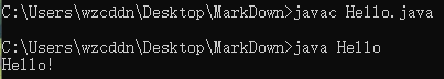 在上面的基础上:java Hello(文件名。不需要后缀)