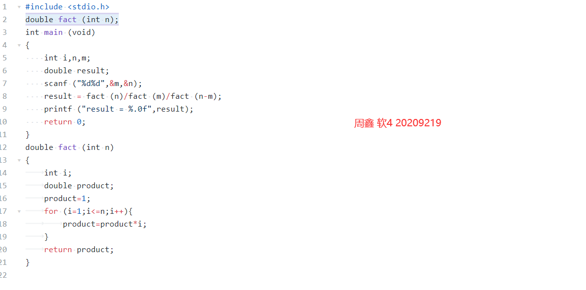 建议定义和调用函数fact(n)计算n!,其中n的类型是int,函数类型是double。