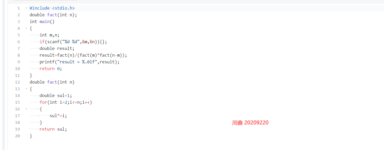 本题要求编写程序,根据排列公式算出从n个不同元素中取出m个元素(m≤n)的组合数。