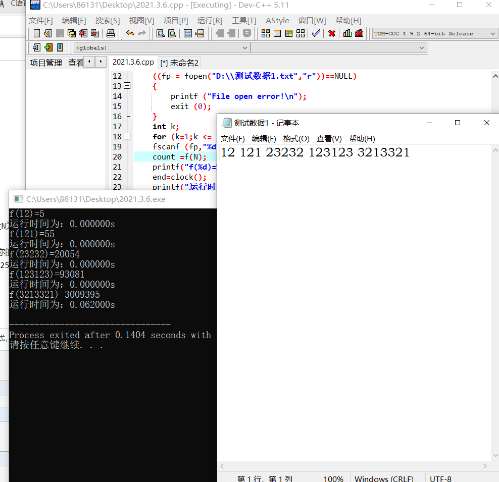 2 将上题中多组测试数据写入文件,并给出测试程序以检测你的代码有没有问题,贴出你的代码、运行结果和文件内容。(5分)
