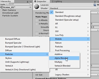 五、创建一个new Material命名为Leaves,设置Shader 为 Mobile/Particles/AlphaBlend