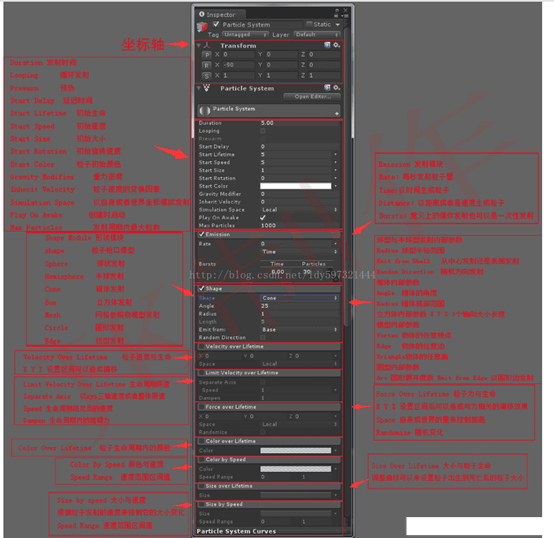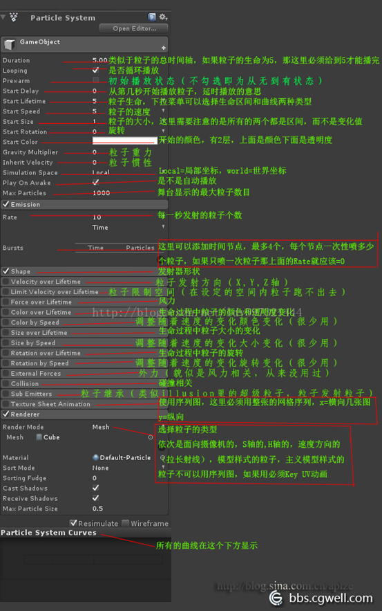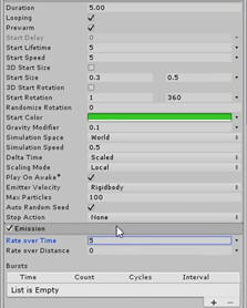 Duration 持续时间 系统运行的时间长度。(设定为5秒,每5秒发射一次粒子)。