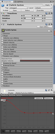 注:1.所需叶子可以按上述写法在制作,然后拖进Particle System 的Renderer中去;
