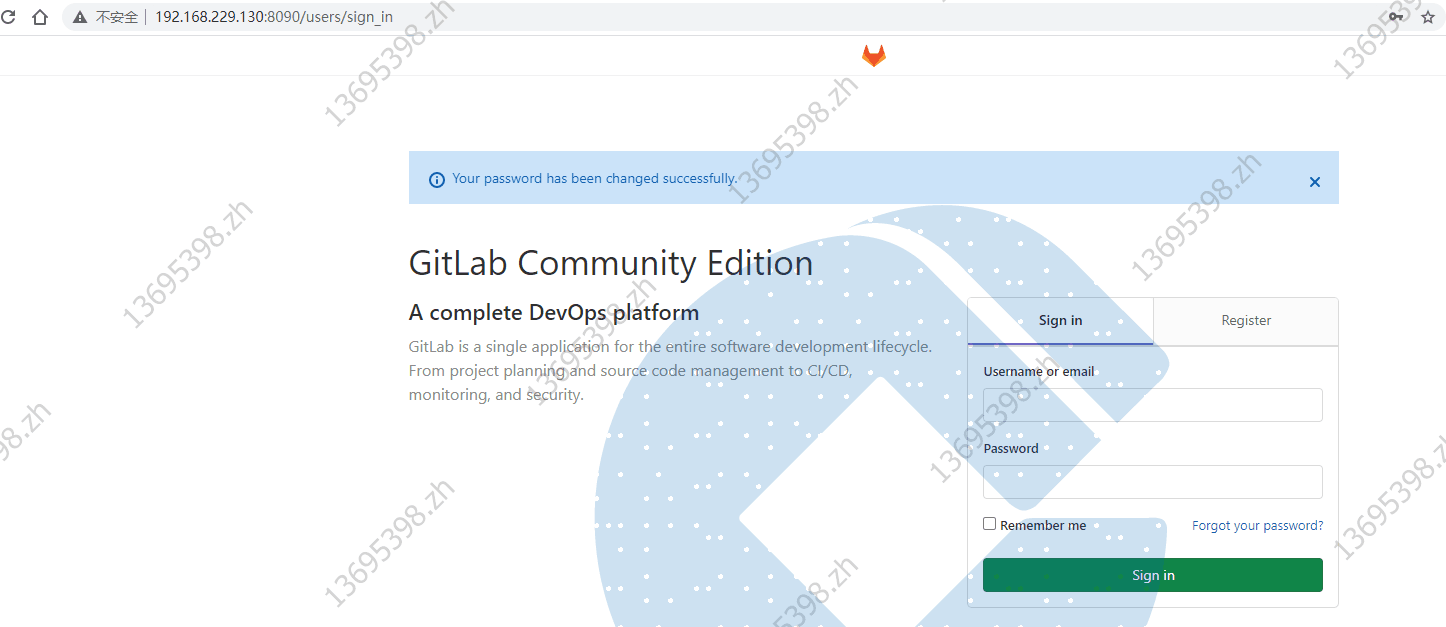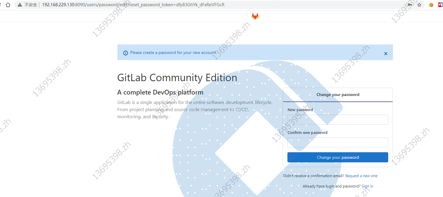 此时可以访问gitlab,然后会跳转到重置密码页面