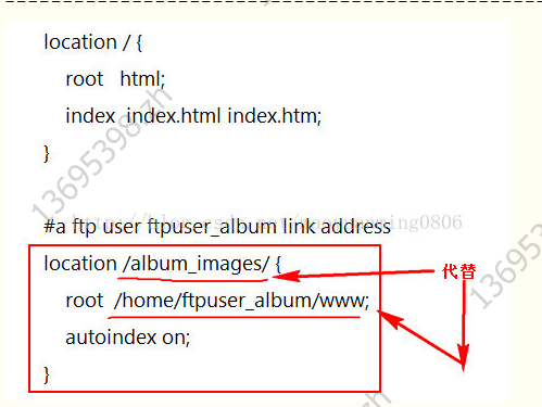 - root /home/ftpuser_album/www/这后面是不带images的且root后面要有空格。www目录下有images目录,用于存放图片!!