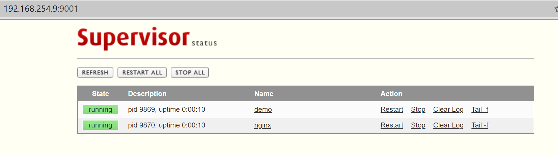supervisorctl status