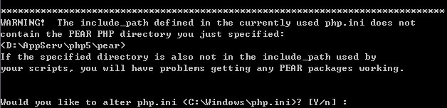 这里报了一个WARNING,问你要不要帮你更新 php.ini 文件,把pear库加入到include_path中,选Y,Enter。