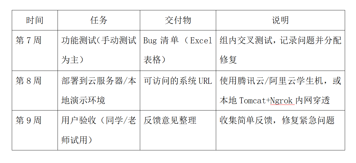第4周结束时应该有一个可演示的“最小版本”(如能登录并显示一条数据)。