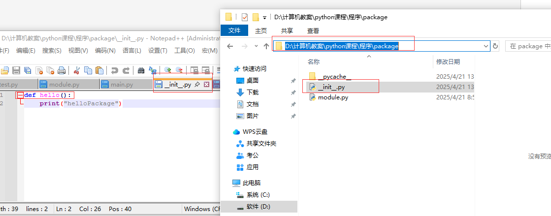 1,首先创建包,包中有标志文件__init__.py脚本,它里面有hello方法。同时包中也有module.py脚本如下: