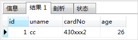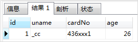 -- 2. 执行第二次:(与第一次的唯一(uname)冲突,执行更新, update后未设置age,观察到age用原来字段值,id也是使用之前的值,未自增) insert into TEST1 (uname, cardNo,age) values ('cc','430xxx2',25) on duplicate key update uname=values(uname),cardNo=VALUES(cardNo);