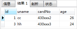 -- 3.执行第三次:(无冲突,执行插入,观察 id 键值,出现了丢失,直接跳到了3) insert into TEST1 (uname, cardNo, age) values ('hh','430xxx3',24) on duplicate key update uname=values(uname),cardNo=VALUES(cardNo),age = values(age);