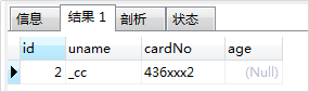 -- 2. 执行第二次:(与第一次的唯一(uname)冲突,执行更新,未设置id,age字段值,观察到age用默认值null,id自增) replace into TEST1 (uname, cardNo) values ('_cc','436xxx2') ;