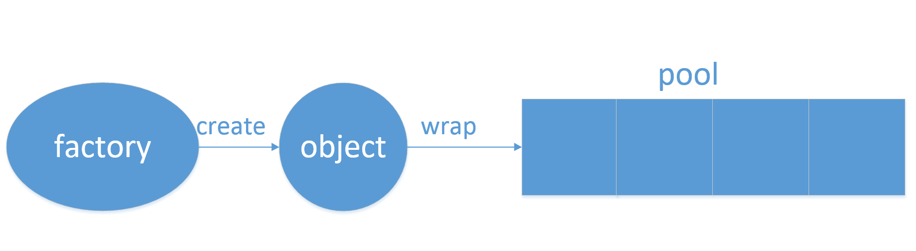 以上三者构成了一个object pool的基本框架。他们的关系可以用如下的一个图来描述: