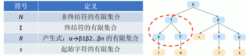 直接推导并不需要通过一些上下文的这样一个关联性判断,所以说被称作上下文无关文法,CFG定义为一个四元式:G=(N,Σ,R,s)
