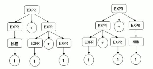 G是一个四原式,包括非终结符和终结符,还有一个产生式,即构造出一个出现语法树的规则,非终结符就是蓝色的节点,如果用汉语句子来比喻,这些蓝色的节点就是主谓宾等一些概念性的词语,最终推导出来的具体句子就是终结符。