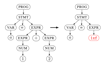当NAUTILUS得到候选派生树后,需要生成实际的输入,将派生树转换为二进制文件的步骤叫做unparsing。对于CFG,定义unparsing函数来连接所有未解析的子树。