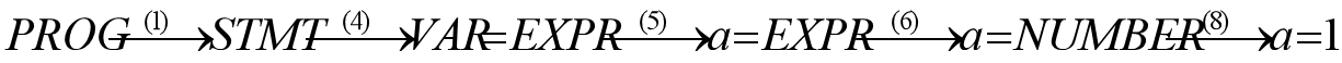 N:{PROG,STMT,EXPR,VAR,NUMBER}