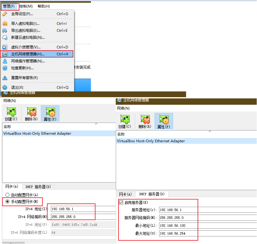 0、VirtualBox安装之后设置主机网络,如图:
