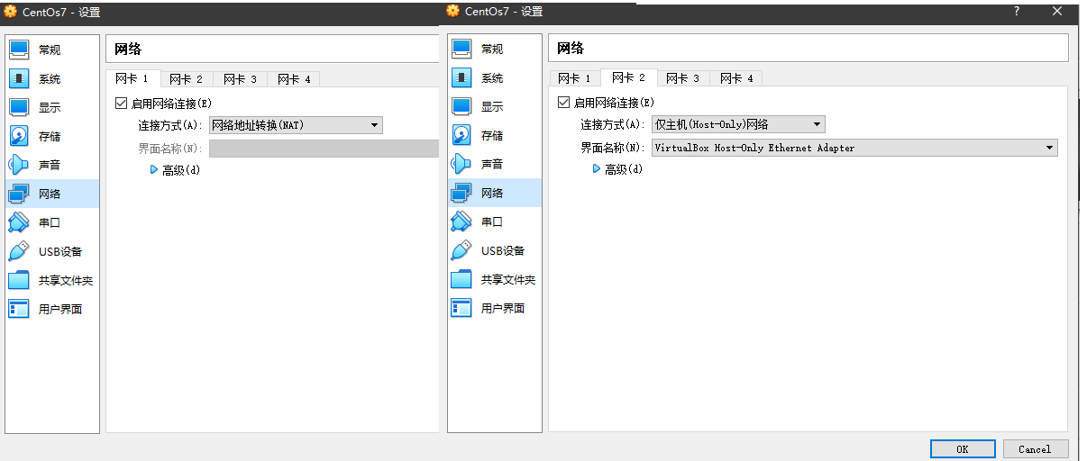 2.1、注意配置网络配置(这里需要配置两张网卡)