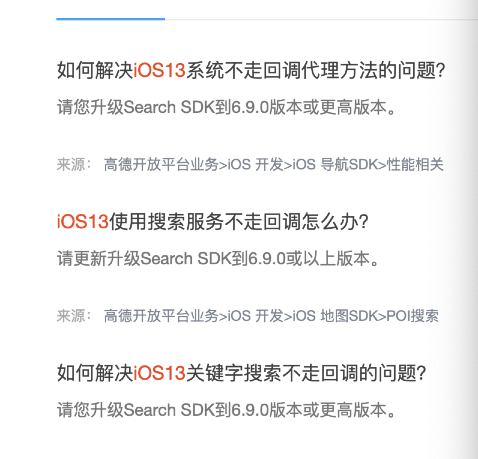 公司的测试机是iOS 12的系统,项目在测试机上跑没有问题;自己的手机是iOS 13的系统,跑项目时,高德地图的方法都没用回调,导致各种功能都不能实现