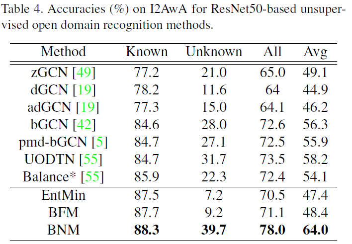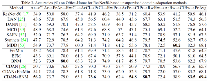 所以类别预测的判别性与多样性同时指向矩阵的核范数,我们可以最大化矩阵核范数(BNM)来提升预测的性能。