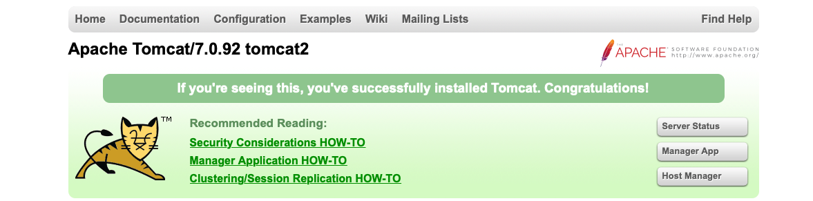 <Connector port="9999" protocol="HTTP/1.1" connectionTimeout="20000" redirectPort="8443" /> <!-- A "Connector" using the shared thread pool--> <!-- <Connector executor="tomcatThreadPool" port="8080" protocol="HTTP/1.1" connectionTimeout="20000" redirectPort="8443" /> --> <!-- Define a SSL HTTP/1.1 Connector on port 8443 This connector uses the BIO implementation that requires the JSSE style configuration. When using the APR/native implementation, the OpenSSL style configuration is required as described in the APR/native documentation --> <!-- <Connector port="8443" protocol="org.apache.coyote.http11.Http11Protocol" maxThreads="150" SSLEnabled="true" scheme="https" secure="true" clientAuth="false" sslProtocol="TLS" /> --> <!-- Define an AJP 1.3 Connector on port 8009 --> <Connector port="8011" protocol="AJP/1.3" redirectPort="8443" /> <!-- An Engine represents the entry point (within Catalina) that processes every request. The Engine implementation for Tomcat stand alone analyzes the HTTP headers included with the request, and passes them on to the appropriate Host (virtual host). Documentation at /docs/config/engine.html --> <!-- You should set jvmRoute to support load-balancing via AJP ie : <Engine name="Catalina" defaultHost="localhost" jvmRoute="jvm1"> --> <Engine name="Catalina" defaultHost="localhost" jvmRoute="tomcat2">配置完成后,分别启动,查看是否启动成功。(可以分别修改/tomcat/webapp/ROOT/index.jsp,区分两个tomcat)