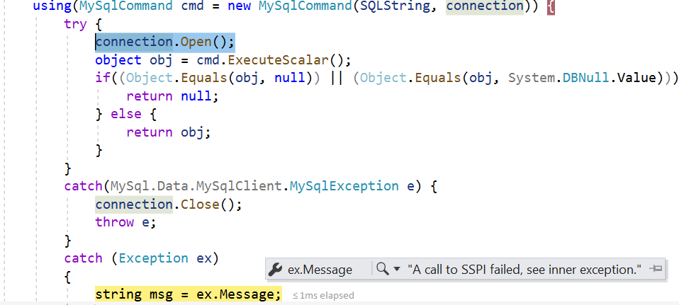 1 打开连接时,报异常信息:A call to SSPI failed, see inner exception.