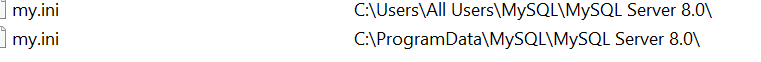1 查找Mysql的配置文件my.ini(其实是同一个文件):如下