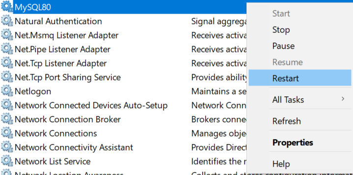 2.3 Win+R输入Services,打开服务管理器,重启Mysql