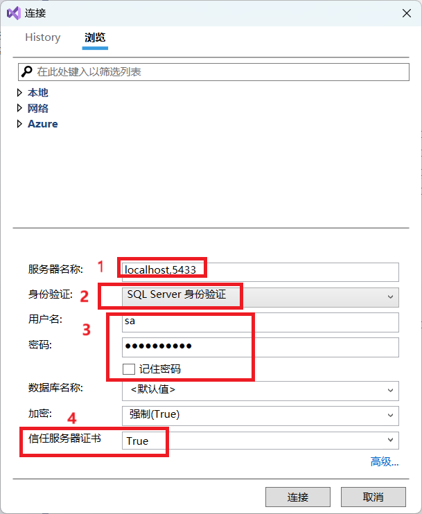 2.2.2 身份验证:选择【Sql Server身份验证】