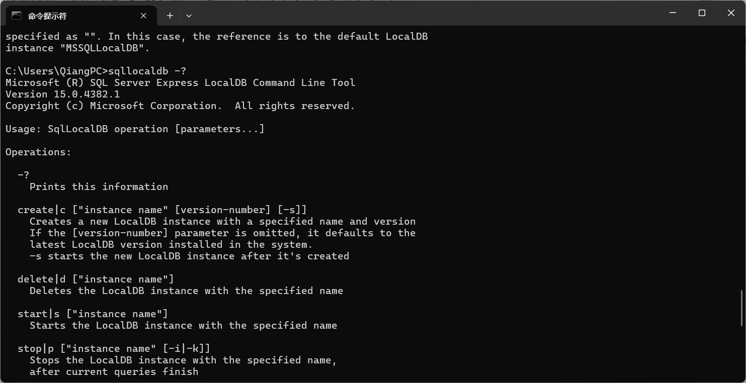 8.2 停止数据库实例: sqllocaldb p 数据库实例名