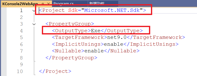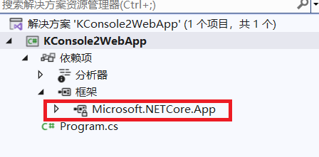 上边<Project Sdk="Microsoft.NET.Sdk">表明下边显示的项目依赖框架:Microsoft.NETCore.App