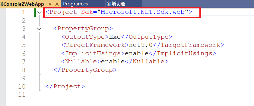 <Project Sdk="Microsoft.NET.Sdk"> => <Project Sdk="Microsoft.NET.Sdk.web">