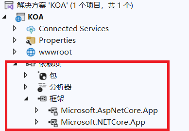 再查看项目依赖,自动添加了Microsoft.AspNetCore.App; 和使用VS向导生成的Blazor web App完全一致;