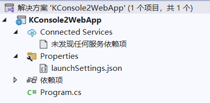但还缺少其他目录,显示我们重启项目。重启后,项目自动增加了Connected Services目录