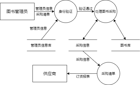 采购系统的主要工作过程为:若是脱销教材,则登记缺书,发缺书单给书库采购人员;一旦新书入库后,即发进书单通知给教材发
