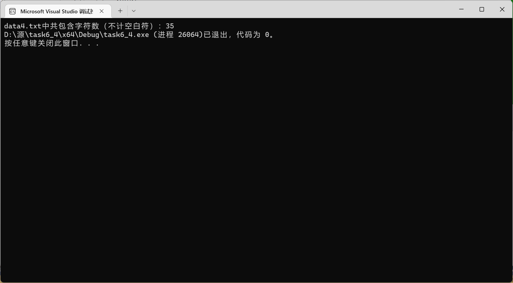 printf("data4.txt中共包含字符数(不计空白符):%d", count);