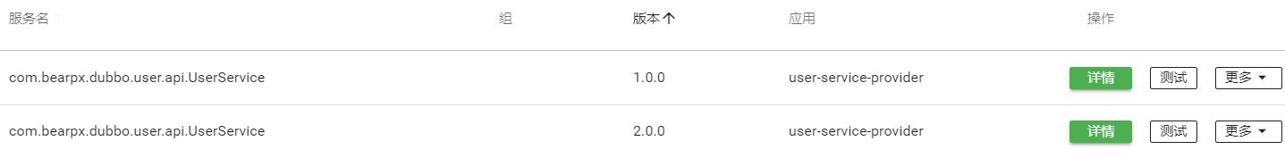 <dubbo:service interface="com.bearpx.dubbo.user.api.UserService" ref="userServiceImpl02" timeout="5000" retries="4" version="2.0.0"/> <bean id="userServiceImpl02" class="com.bearpx.dubbo.user.api.impl.UserServiceImpl" />