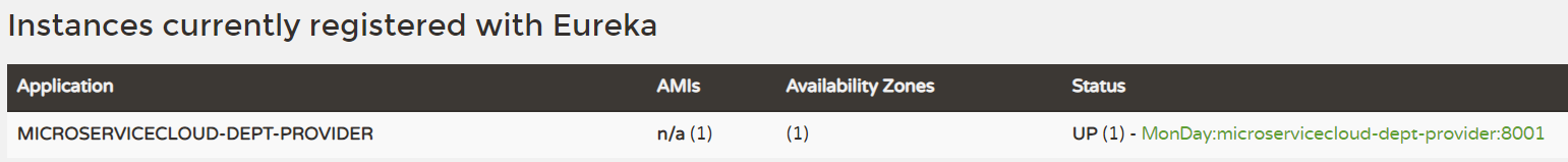 ------>[microservicecloud-dept-provider] MICROSERVICECLOUD-DEPT-PROVIDER 192.168.100.1 8001 http://192.168.100.1:8001