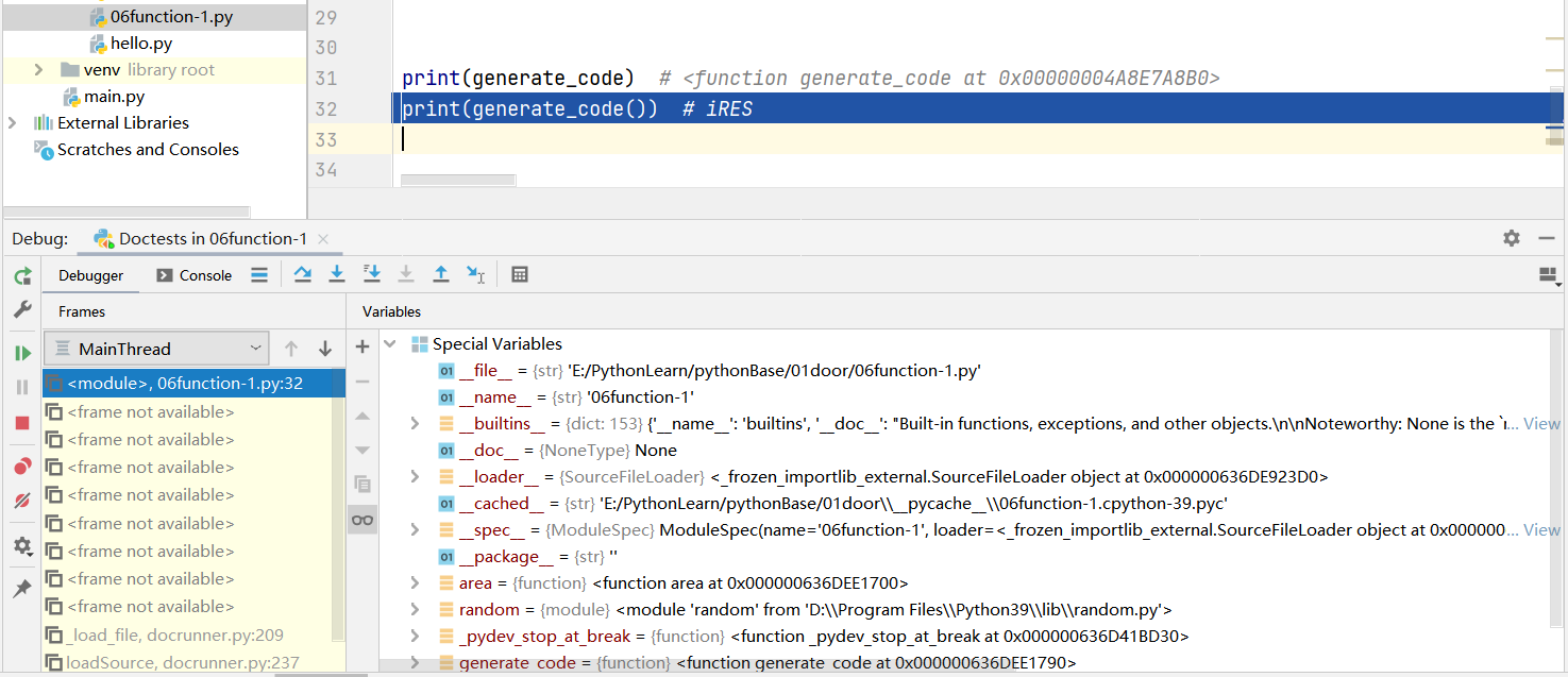 print(generate_code) # <function generate_code at 0x00000004A8E7A8B0>