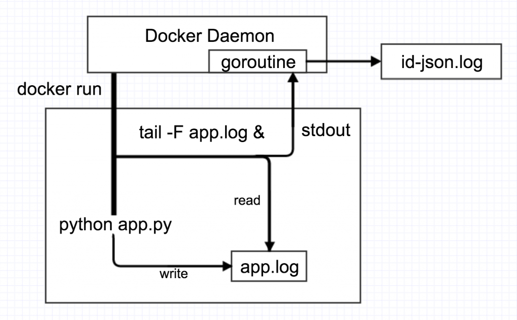 run.sh中启动了一个后台进程,使用tail命令强制将/var/log/app.log的内容传输至标准输出,