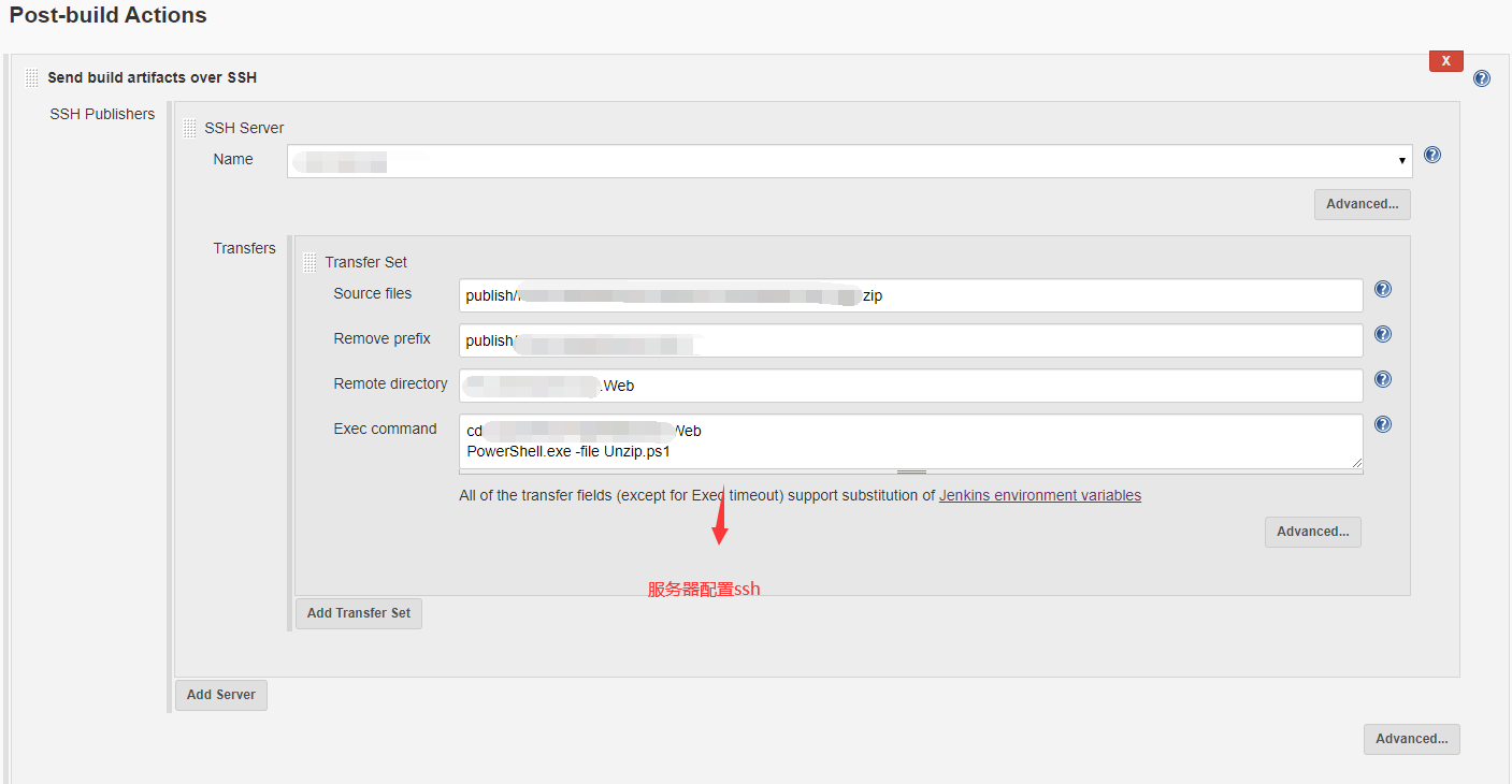 Source files :需要上传的文件地址,相对地址(比如:D:\Program Files\Jenkins\workspace\test\a.zip;对应这里a.zip,test为当前构建的项目)
