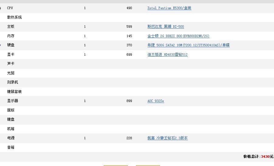 显 卡: 昂达 9600GSO 384M 460元(384MB 1.0NS)
