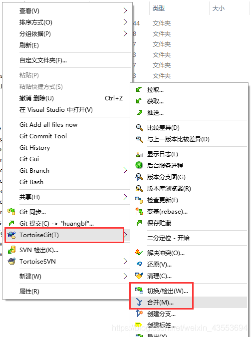 2、右键 > “切换分支” 到要合并的分支 master