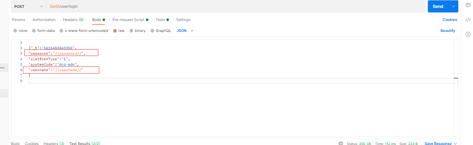 备注:如果一定要在test里取请求参数里填的东西,如参数是JSON字符串,那就用 JSON.parse(request.data).username