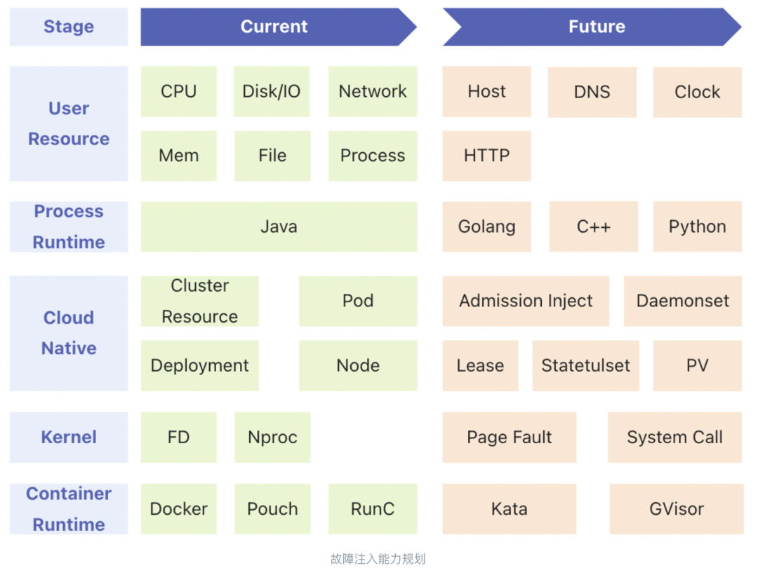 以下仅为故障能力分类,具体提供的原子故障能力详见官方文档(欢迎提交issue,提出新能力需求,需求较高的优先提供):